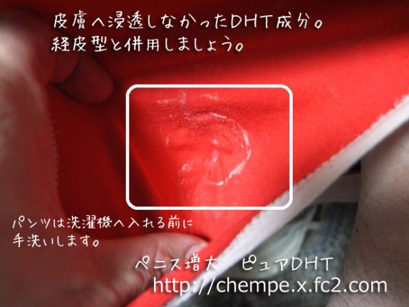 2) 経皮型(もしくは液体D☆SO)を塗ってDHTクリームをペニス全体へ伸ばす。