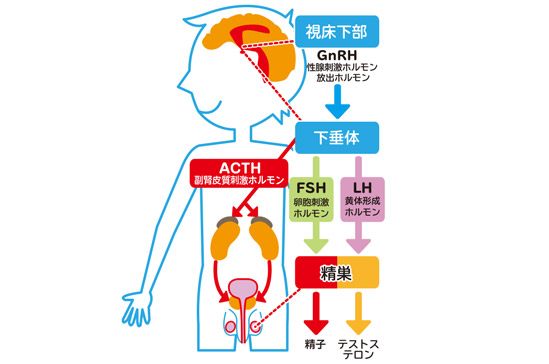 テストステロンを増産する命令を睾丸(精巣)に出します。