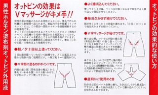 メチルテストステロンは皮膚から吸収されやすい特徴があり、低下した男性ホルモンを効果的に補充するには、オットピン軟膏のように、男性ホルモンを塗布薬にして直接、睾丸に塗る精力剤がお勧めです。-----------------------------------【取扱い説明書】http://www.vitalis.co.jp/pdf/ottopin_s.pdf-----------------------------------